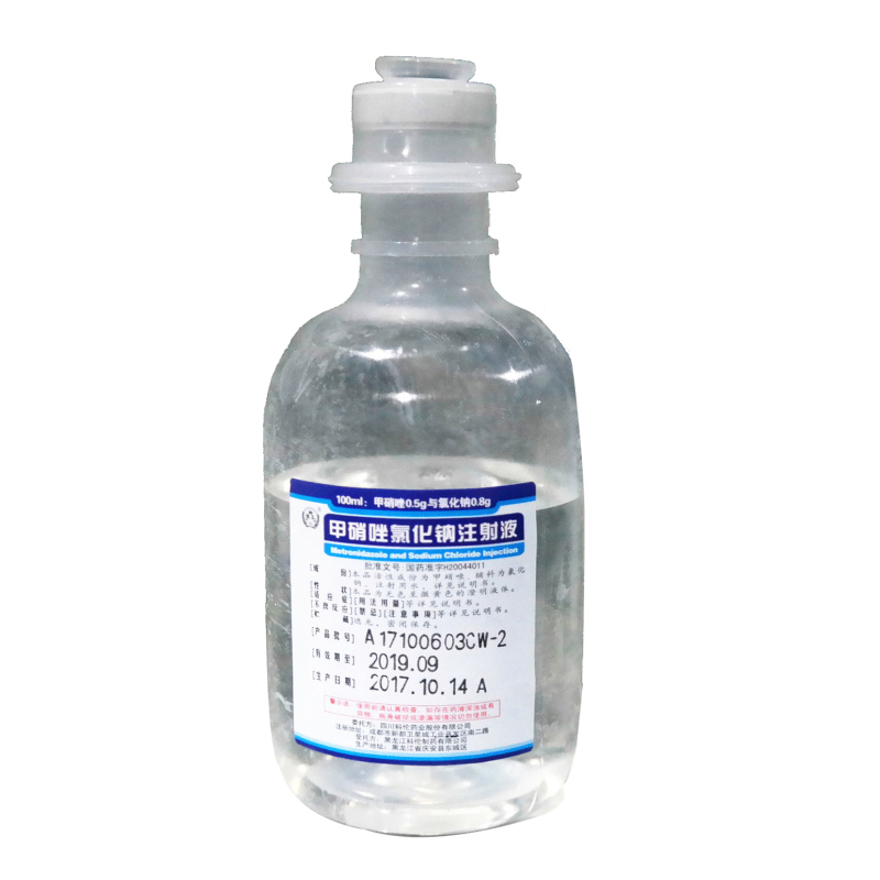 100ml:甲硝唑0.5g与氯化钠0.8g